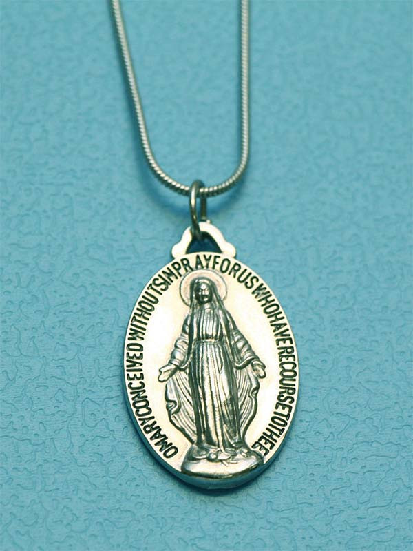 The Miraculous Medal was given to St. Catherine Laboure i 1830 in Laboure, France. Mary Immaculae appeared to Catherine who commissioned her to make the Miraculous Medal that we have today. Our Lady said to her: ' Have a medal struck upon this model. All those who wear it, when it is blessed, will receive great graces especially if they wear it round the neck. Those who repeat this prayer with devotion will be in a special manner under the protection of the Mother of God. Graces will be abundantly bestowed upon those who have confidence.'