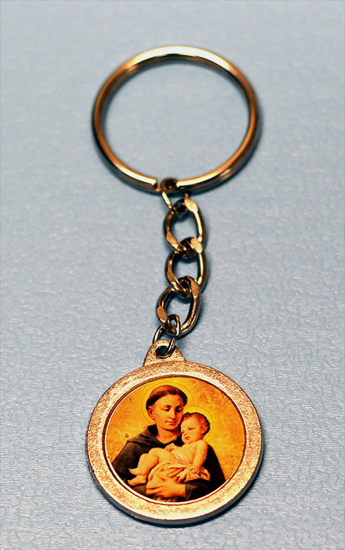 This is a very special key chain with a loving image of St. Anthony holding Jesus on the front and a relic on the back - very inspiring.