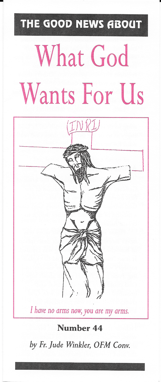 THE GOOD NEWS ABOUT What God Wants For Us. An informative quad-fold pamphlet written by Father Jude Winkler, OFM Conv.